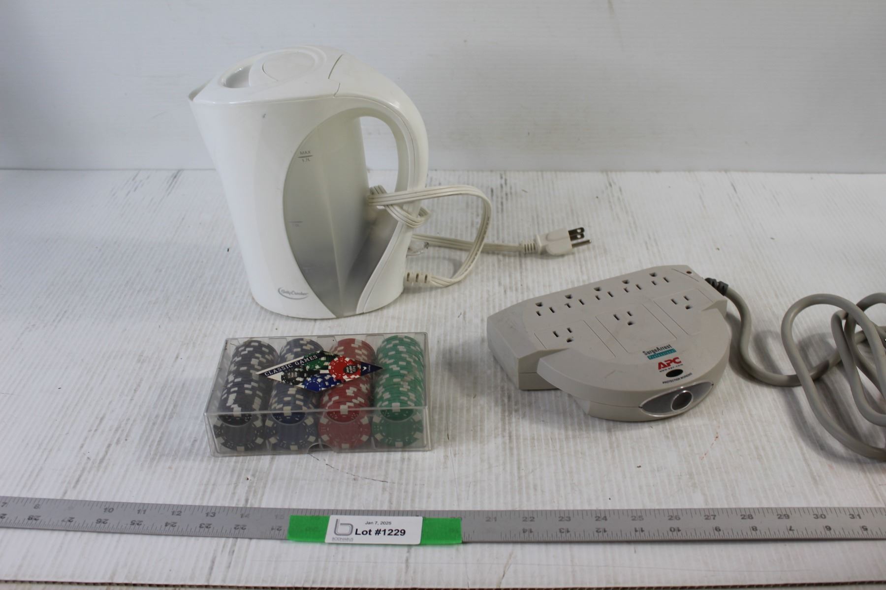 Poker Chips, Electric Kettle - Tested Powers On, Extension Block