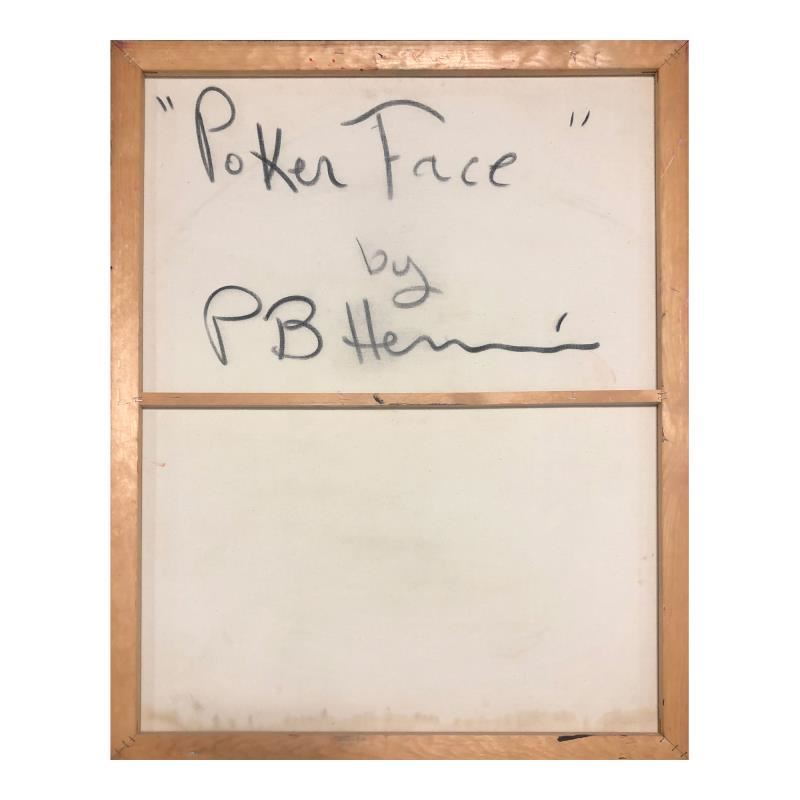 "Poker Face" is an original oil painting on stretched canvas by Paul Blaine Henrie (1932-1999). The piece is hand signed by the artist and comes with a letter of authenticity. Please note that due to the age of this piece and the way it was stored, there are minor sings of wear, particularly on the corners and edges. Measures approximately. 40" x 30" (image).