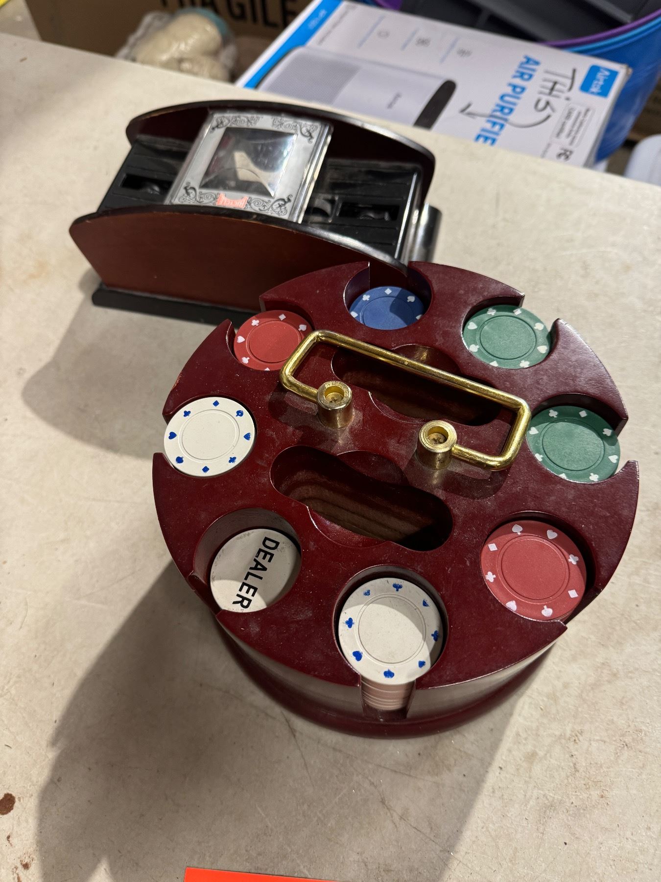 Poker chips/card shuffler