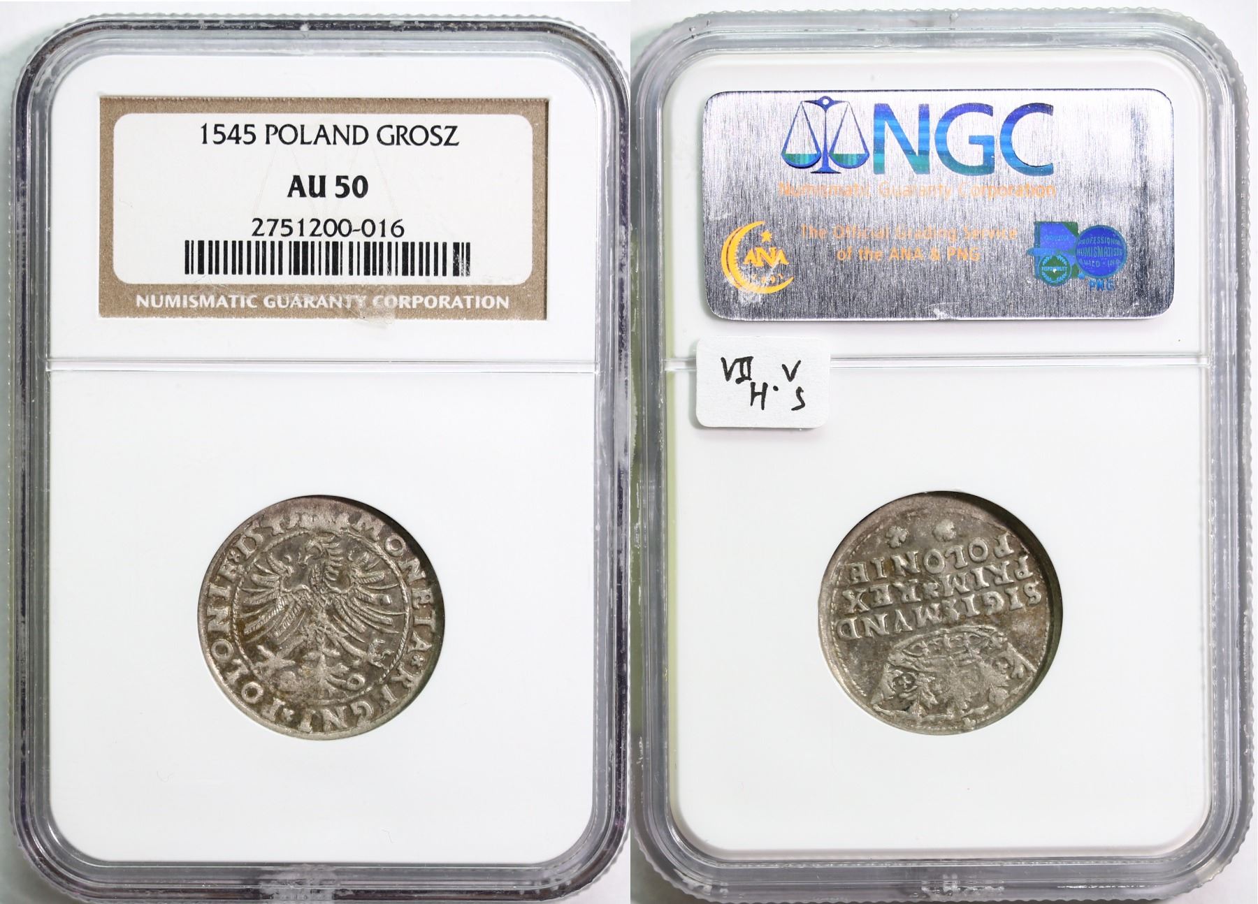 Poland; 1545 Grosz NGC AU50