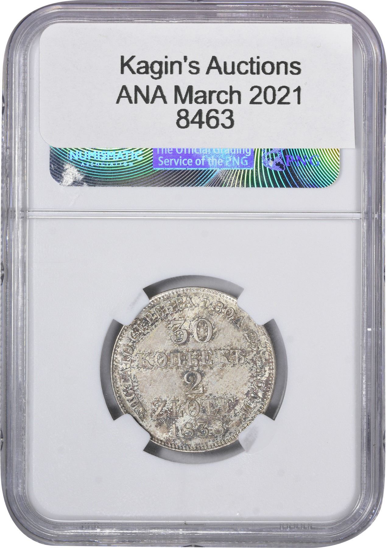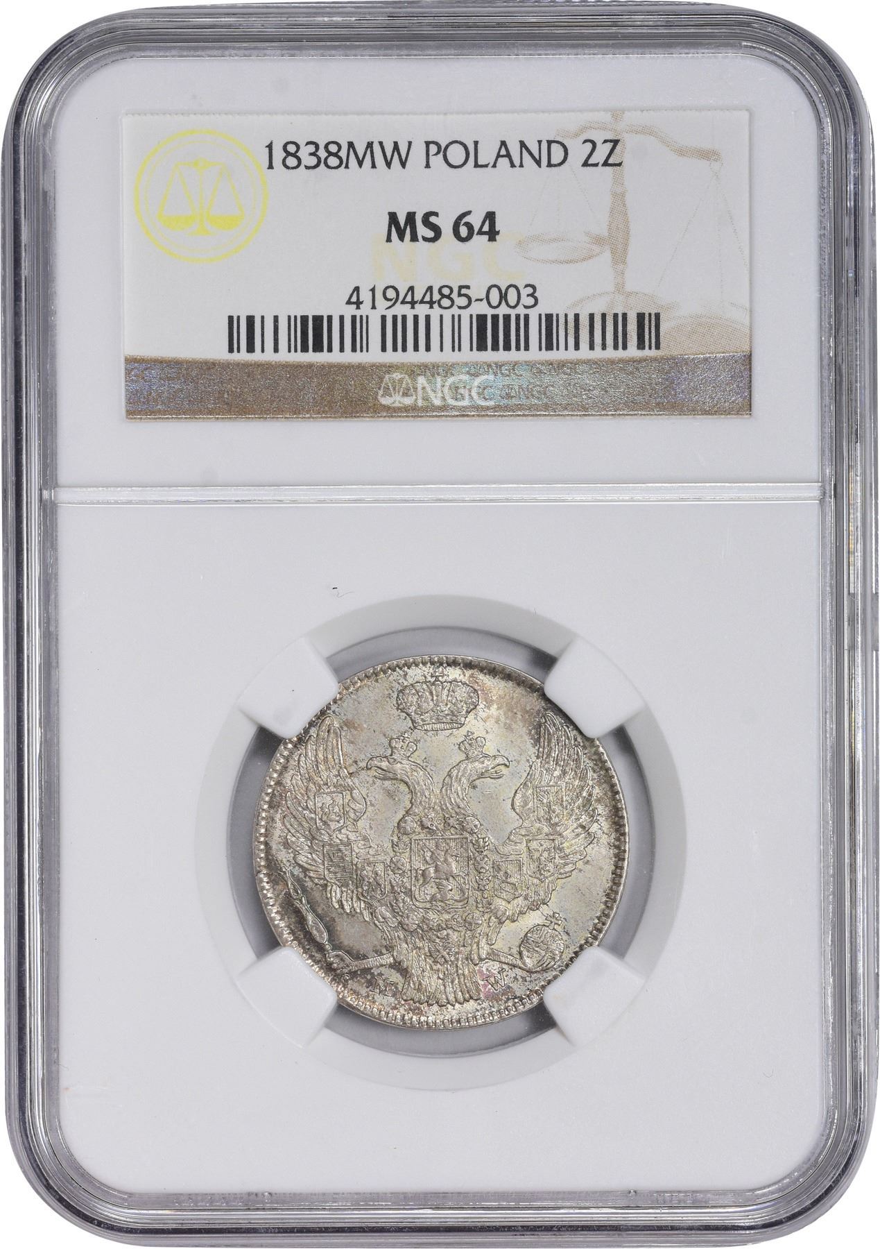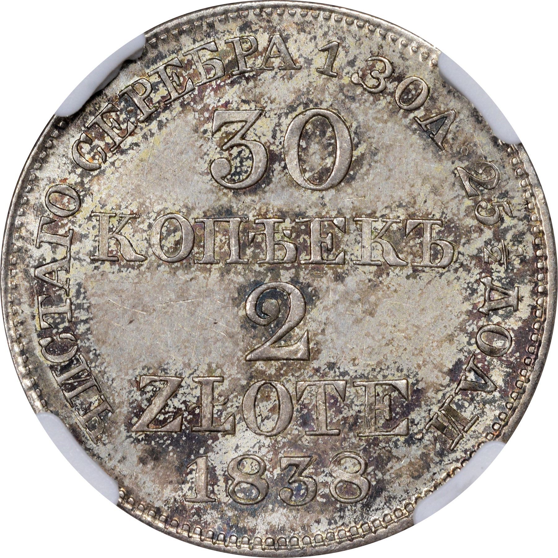 Title: Poland. 1838-MW 2 Zloty or 30 Kopeks. C-132. MS-64 NGC.