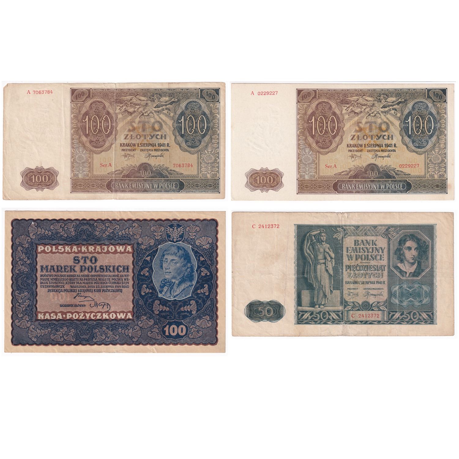 Poland 1919 to 1941 notes, Pick # 27, # 102 & 2x# 103. 4pcs
