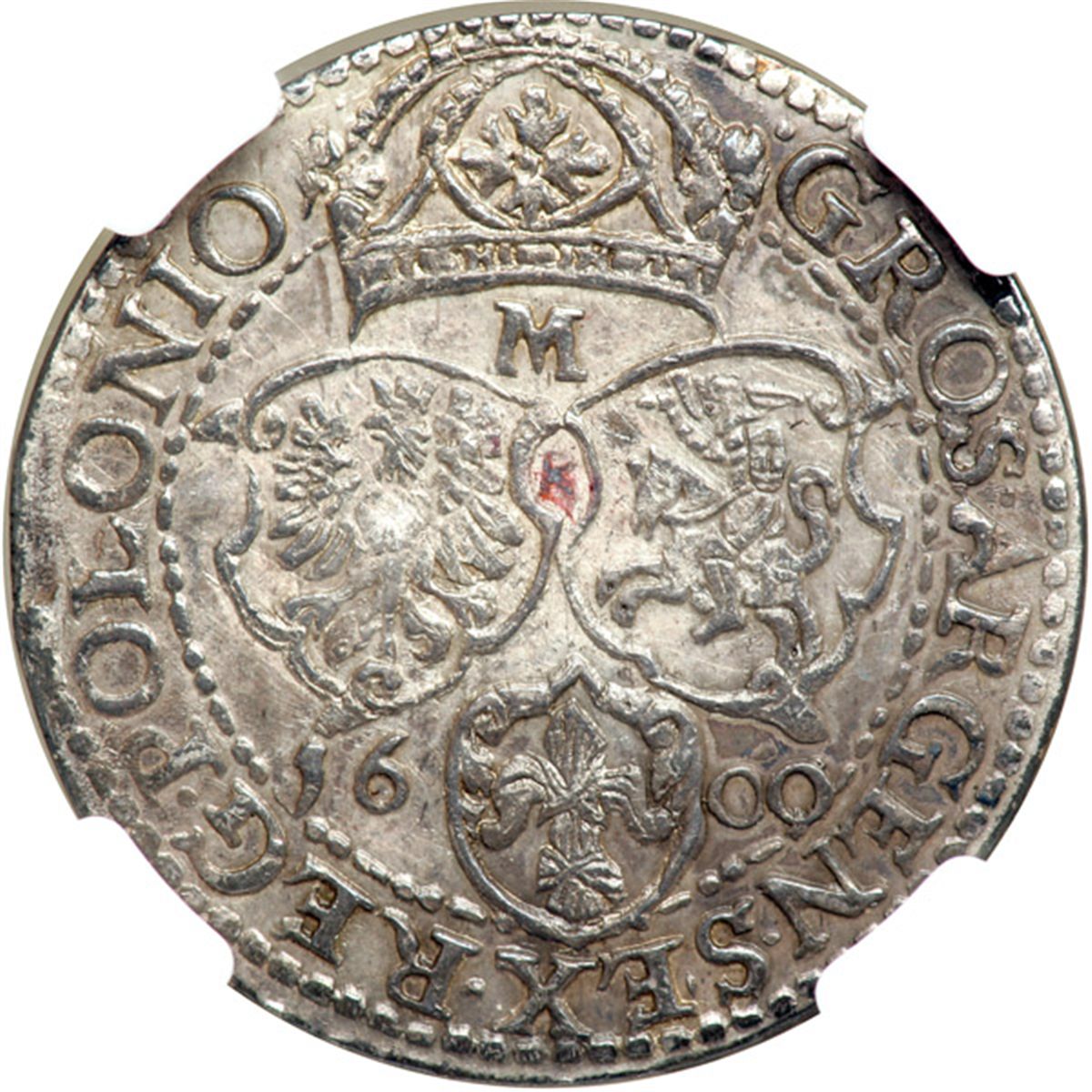 Poland. 6 Groszy, 1600-M. Gum-1155. Marienburg. Sigismund. Sharply struck with underlying original mint luster. NGC graded MS-61.