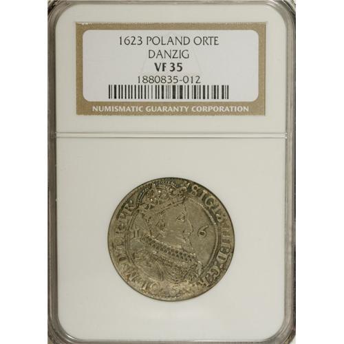 <B>Danzig. Sigismund III Ort (1/4 Talar) 1623,</B></I> KM-15.2, VF35 NGC.<BR><BR><b>Shipping:</b> Coins & Currency (<a target="_blank" href="http://www.heritageauctions.com/common/shipping.php">view shipping information</a>)