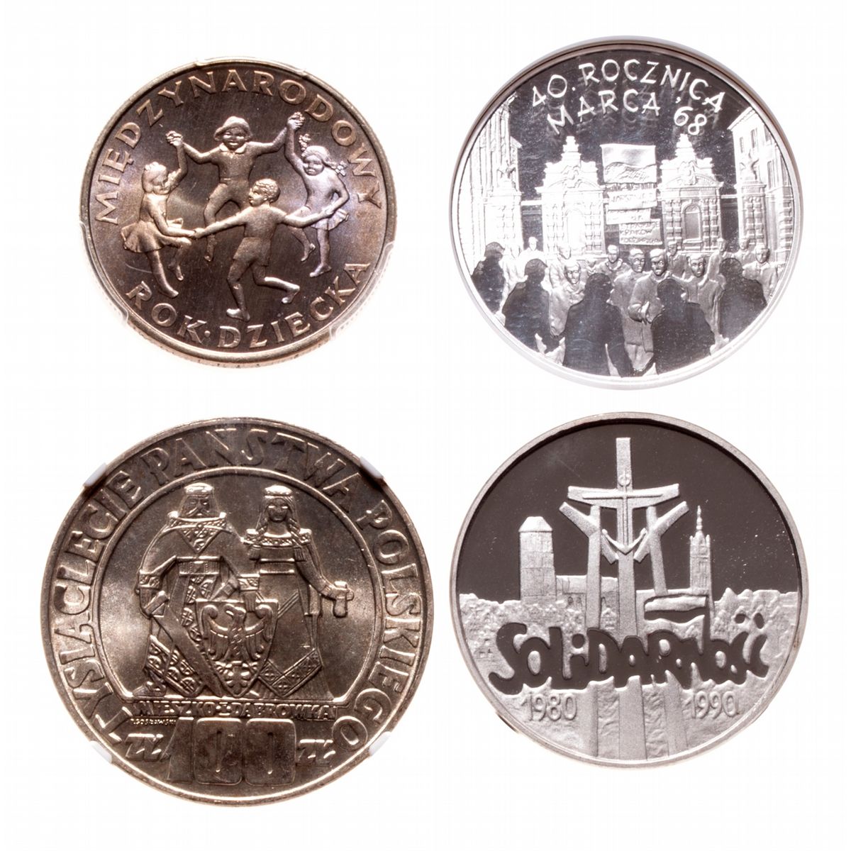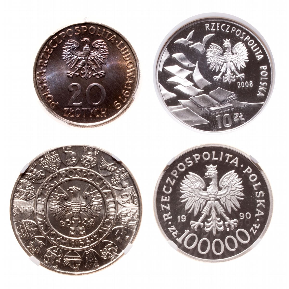 Poland. Lot of four (4) Gem and Proof Commemorative coins, including: 10 Zlotych 2008, March 1968 Anniversary, NGC PR-70 Ultra Heavy Cameo; 20 Zlotych 1979 MW, Year Of The Child, PCGS MS-66; 100 Zlotych 1966, NGC MS-66; 10000 Zlotych 1990, NGC PR-68.