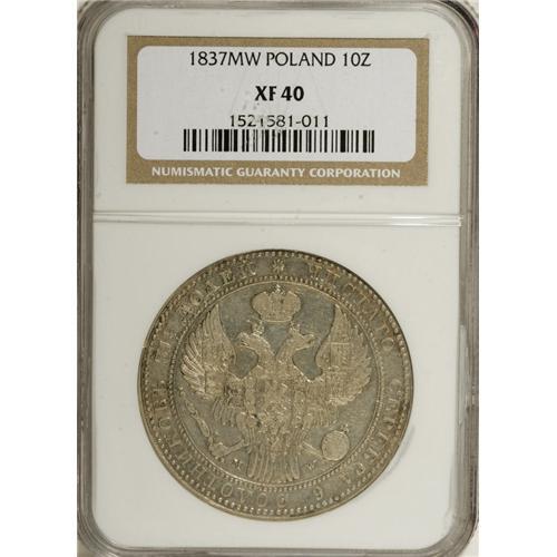<B>Nicholas I. 10 Zlotych - 1-1/2 Roubles 1837-MW,</B></I> KM-C134, XF40 NGC.<BR><BR><b>Shipping:</b> Coins & Currency (<a target="_blank" href="http://www.heritageauctions.com/common/shipping.php">view shipping information</a>)