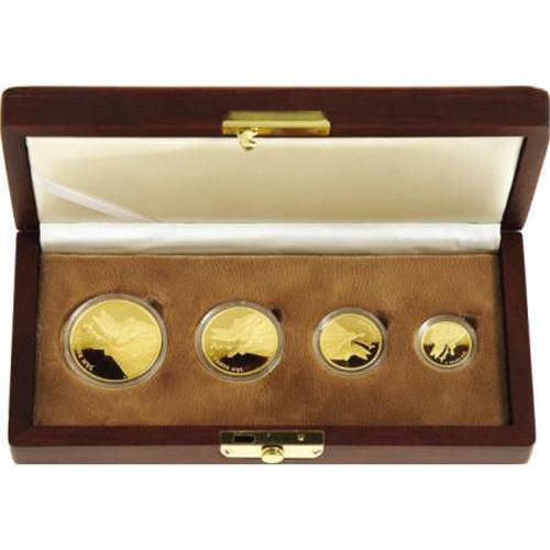 <B>Republic gold Proof Set 1987,</B></I> KM168-171, Friedberg 132-135, 1000, 2000, 5000 and 10000 Zlotych, all gem cameo Proof in the original wooden box of issue with COA. The designs feature Pope John Paul II facing left. The mintage listed in the SCWC for each type is 201 and on the COA, 200. Rare and extremely popular set.<BR><BR><b>Shipping:</b> Coins & Currency (<a target="_blank" href="http://www.heritageauctions.com/common/shipping.php">view shipping information</a>)
