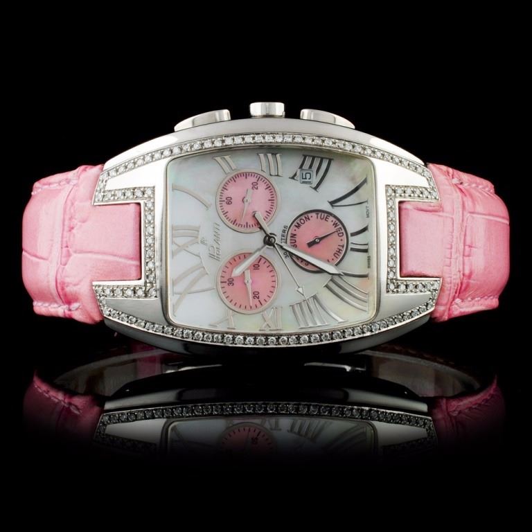 Dial: White Mother of Pearl Dial with 3 Pink Sub-Dial