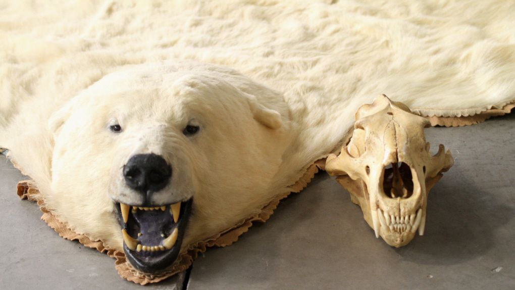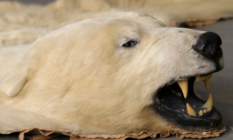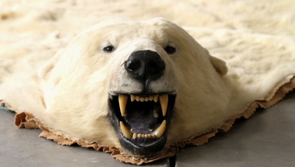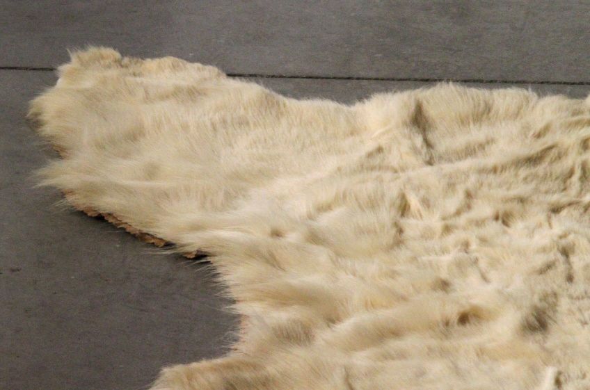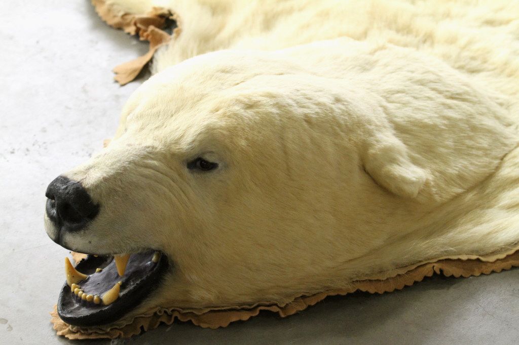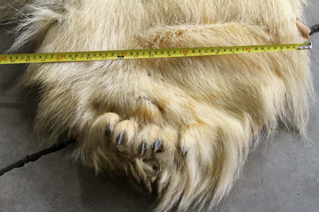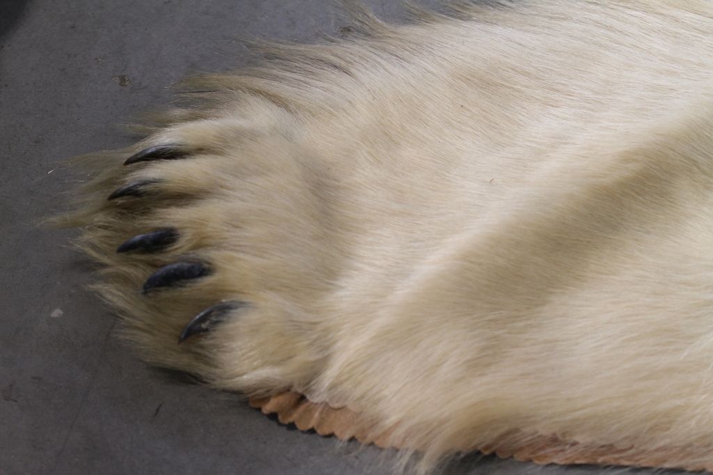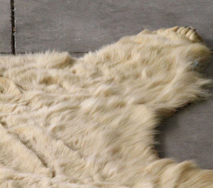 Polar Bear Rug by Jonas Brothers This is a Trophy Polar Bear which was don by the Jonas Brothers and was Shot by Edgar J. Foss in 1969 at Cape Hope, Alaska. Attached is the story of how this bear was killed and of the Hunter. In summary the hunter, Edgar J. Foss a WWI B-24 Pilot, War Hero, and Newspaper Editor, and the guide were told to find out this wild polar bear which had killed an Eskimo man. They Flew over him and after failing to find him turned back towards their plane and in between them was this giant Polar Bear, he charged and the guide video taped not allowing Egar to shoot finally once he was almost on top them Edgar shot and dropped the bear within 20 yards. This Bear Comes with the kill sire pictures, skull, and this authentic piece of history. Measures from Front Paw to Front Paw is 113", from the Nose to the Back of the Paw is 118", from the Front to the opposite Back Paw is 132", Back Paw is 19", Front Paw is 10" wide at the claws, head on rug is 34" long, skull 17.5" with over 2" front tooth.
