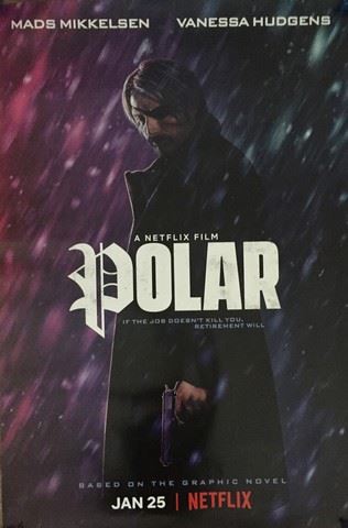 Movie poster for "Polar" (2019) a Netflix original, double sided poster with reverse image on the back side. (37x28)