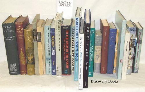 Polar Regions. (1) Markham, Clements R. THE LANDS OF SILENCE. A HISTORY OF ARCTIC AND ANTARCTIC EXPLORATION. Cambridge, 1921 539pp. Plates. Original cloth, minor wear, corners bruised. Good-very good. (2) Hartwig, Dr. G. THE POLAR WORLD: A POPULAR DESCRIPTION OF MAN AND NATURE IN THE ARCTIC AND ANTARCTIC REGIONS OF THE GLOBE. New: York: 1869 First US edition 486pp. Many illus. Original gilt cloth, minor wear & marking, near very good. (3) Hartwig. THE POLAR WORLD …… Another edition, London: 1886 548pp. Plates, illus, maps. Original decorated cloth, a.e.g. Minor wear & staining, good. (4) Joerg, W. L. G. BRIEF HISTORY OF POLAR EXPLORATION SINCE THE INTRODUCTION OF FLYING ….. New York: 1930 50pp. Printed wrapper. In cloth slipcase with two large folding maps. Very good. (5) Nordenskiold, Otto & Ludwig Mecking. THE GEOGRAPHY OF THE POLAR REGIONS. New York: 1928 359pp. Illus., maps. Softbound. Minor soil, good. (6) Gould, Laurence M. THE POLAR REGIONS IN THEIR RELATION TO HUMAN AFFAIRS. New York: 1958 54pp. Illus, maps. Boards, very good. (7) Victor, Paul-Emile. MAN AND THE CONQUEST OF THE POLES. New York: 1963 320pp. Illus, maps. Cloth, very good in d/j. (8) Feeney, Robert E. POLAR JOURNEYS. THE ROLE OF FOOD AND NUTRITION IN EARLY EXPLORATION. Wash, DC: c. 1997 278pp, Illus., map. Softbound, very good. (9) Ray, G. Carleton & M. G. McCormick-Ray. WILDLIFE OF THE POLAR REGIONS. New York: (1981) 232pp. Many illus. incl. Color. Cloth, fine in d/j. (10) Fiennes, Sir Ranulph. TO THE ENDS OF THE EARTH. THE TRANSGLOBAL EXPEDITION …… New York: c.1983 547pp. Color illus. Cloth, fine in d/j. (11) Bertram, Colin. ARCTIC AND ANTARCTIC. A PROSPECT OF THE POLAR REGIONS. Cambridge: (1958) 123pp. Illus. Cloth, very good in d/j. (12) Stonehouse, Bernard. NORTH POLE, SOUTH POLE. A GUIDE TO THE ECOLOGY AND RESOURCES OF THE ARCTIC AND ANTARCTIC. (London, c.1990) 4to. 216pp. Many illus. in color. Cloth, fine in d/j. (13) Hall, Colin Michael & Margaret E. Johnston. POLAR TOURISM. TOURISM IN THE ARCTIC AND ANTARCTIC REGIONS. Chichester, (c.1995) 329pp. Cloth, very good. (14) Courtauld, Augustine. FROM THE ENDS OF THE EARTH. AN ANTHOLOGY OF POLAR WRITINGS. London, 1958 423pp, Cloth, very good in d/j. (15) McWhinnie, Mary A. POLAR RESEARCH. TO THE PRESENT AND THE FUTURE. Boulder, CO, (c.1978) 309pp. Illus. Cloth, very good. (16) Thomas, Charles W. ICE IS WHERE YOU FIND IT. Indianapolis, (c.1951) 378pp. Illus. Cloth, very good. (17) Bloom, Lisa. GENDER ON ICE. AMERICAN IDEOLOGIES OF POLAR EXPEDITIONS. Minneapolis, (c.1993) 163pp. Softbound, very good. (18) Rowell, Galen. POLES APART. PARALLEL VISIONS OF THE ARCTIC AND ANTARCTIC. Berkeley, (c.1995) Oblong 4to. 183pp. illus in color. Cloth, fine in d/j. signed by author (19) Ley, Willy. THE POLES. (Life Nature Library.) New York, (c.1962) 192pp. Illus. Cloth, very good. (20) MacDonald, Edwin A. POLAR OPERATIONS. Annapolis, (c.1969) 239pp. Illus. Cloth, fine in d/j. (21) Asimov, Isaac. THE ENDS OF THE EARTH. THE POLAR REGIONS OF THE WORLD. New York, (c.1975) 363pp. Illus. Cloth, fine in d/j. (22) Imbert Bertrand. NORTH POLE, SOUTH POLE. JOURNEYS TO THE ENDS OF THE EARTH. New York, (c.1992). Illus, Softbound, VG. (23). Scott, J. M. THE PRIVATE LIFE OF POLAR EXPLORATION. Edinburgh, (1982) 177pp. Illus. Cloth, fine in d/j. (24) Rosing, Norbert. THE WORLD OF THE POLAR BEAR. (Ontario, c.1996) Oblong 4to. 175pp. color illus.Cloth, fine in d/j. (24)
