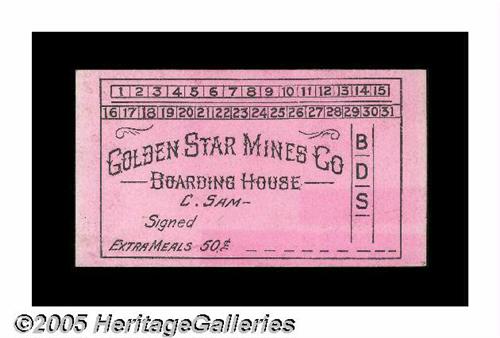 <B>Polaris, AZ- Gold Star Mines Co. Boarding House</B></I> Listed as an R-9 in the Arizona reference, and printed on pink card stock. Birt states that these were issued circa 1910. <B>Uncirculated.</B></I>