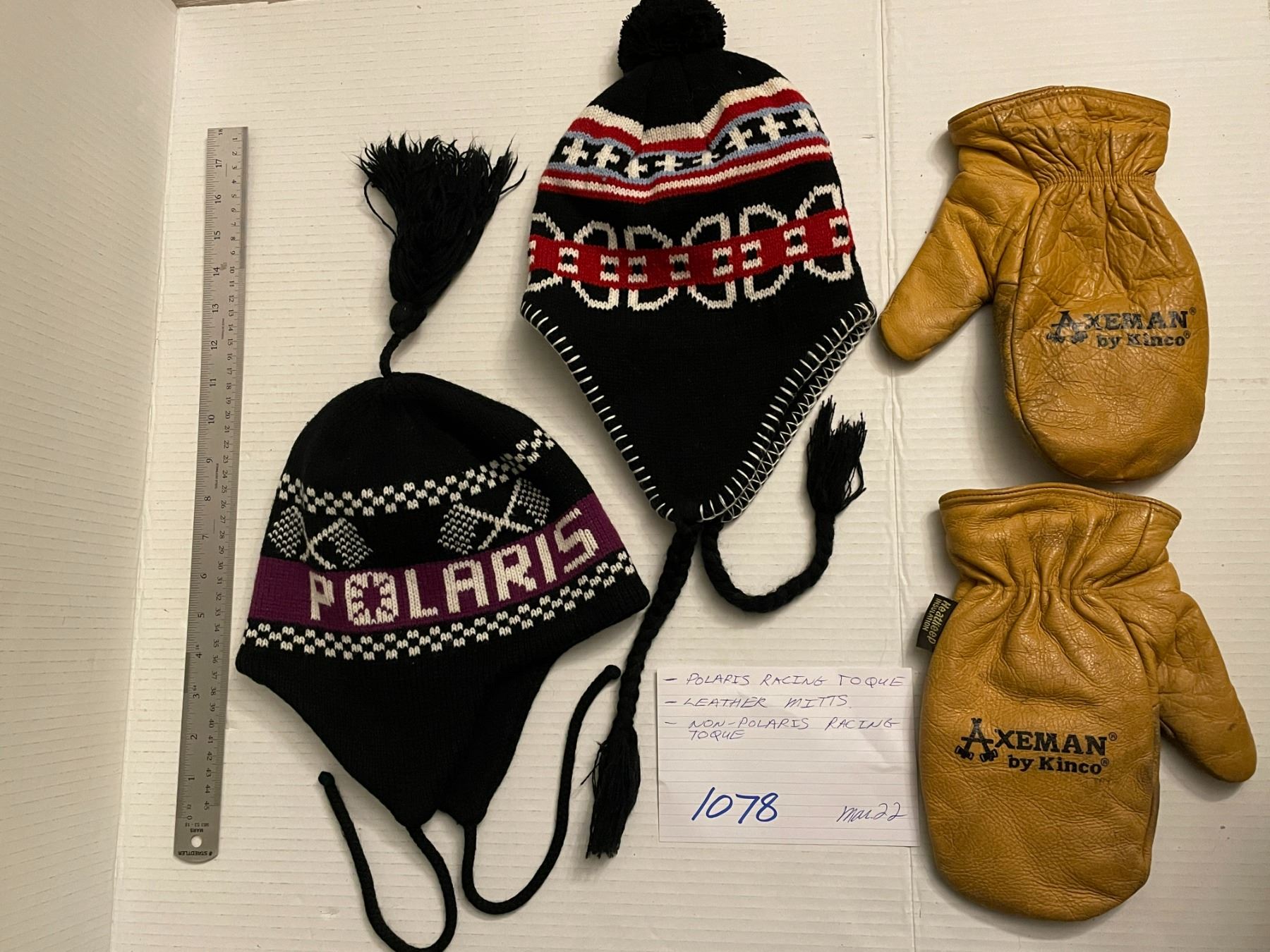 Polaris Racing toque - leather mitts - non-Polaris racing toque