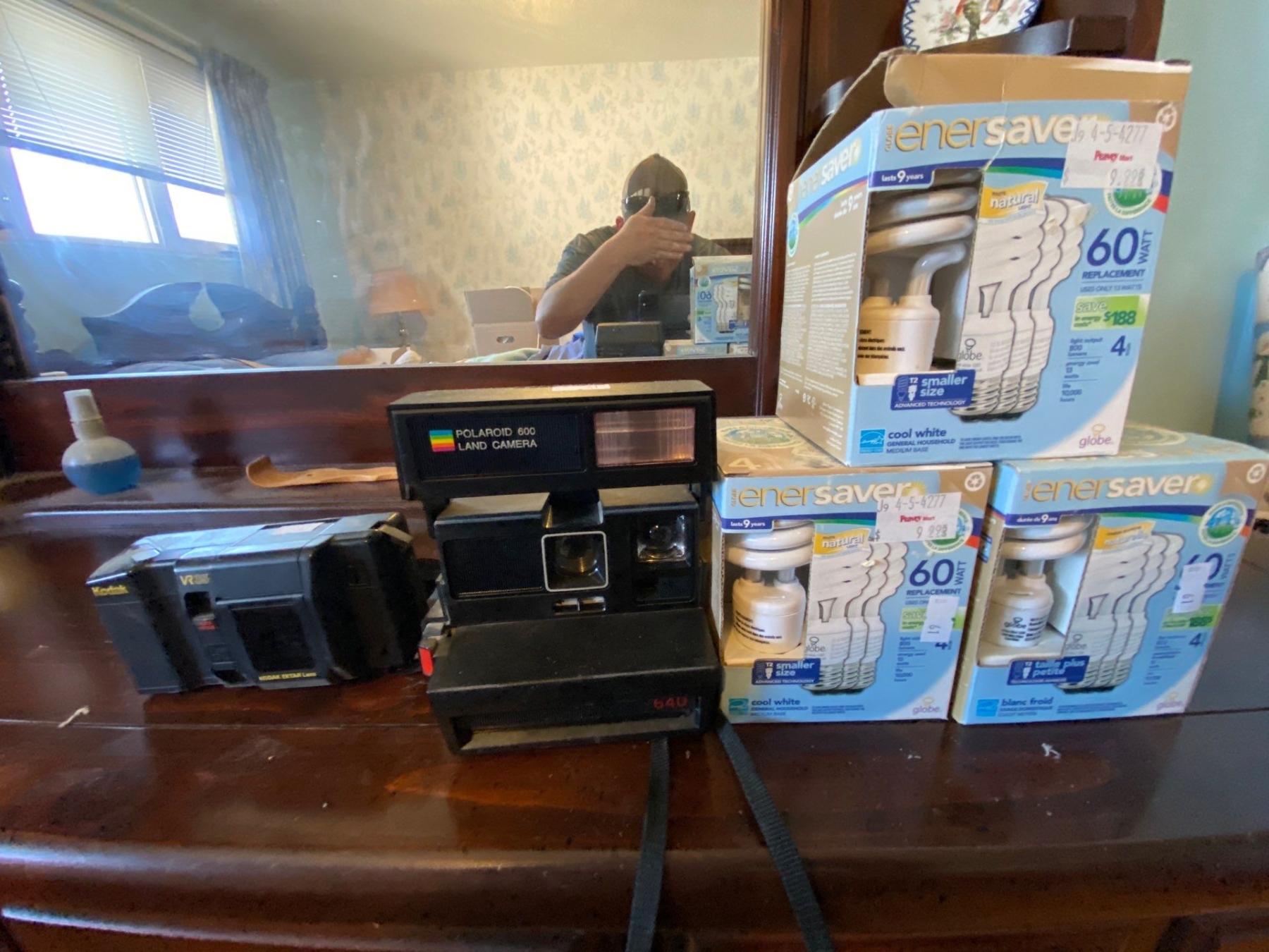 Polaroid 600 land camera 640 in a Kodak VR 35 camera and three boxes of energy saver brand new in the box. Cool white lights.