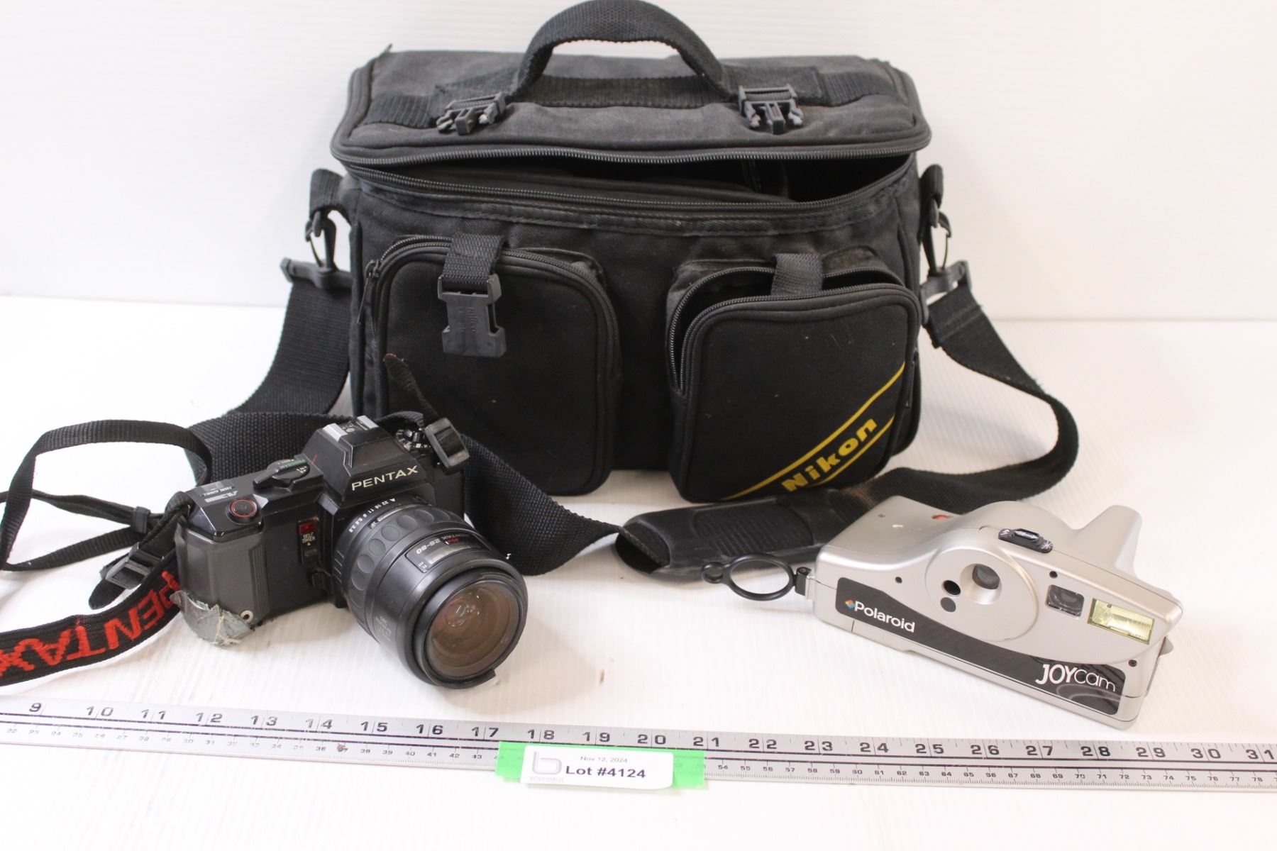 Polaroid Camera & Pentax Camera in Carrying Bag w/Contents