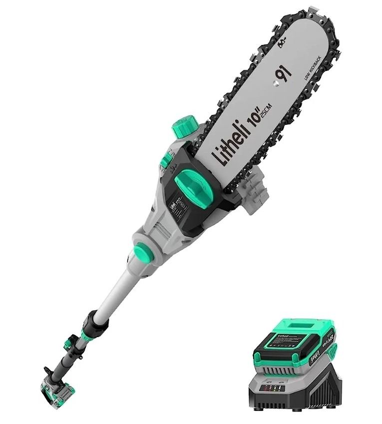 Litheli Cordless Pole Saw, 10inch, 20V Battery-Powered, Tree Trimming, Branch Cutting, And Pruning, Comes With Battery And Charger Open Box, New Condition