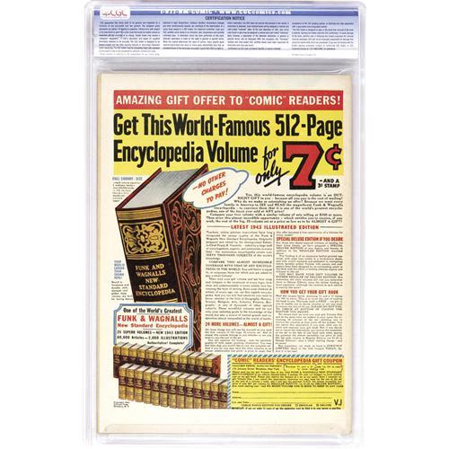 50. Since we cannot examine encapsulated notes or comics, they are sold "as is" without our grading opinion, and may not be returned for any reason. Auctioneer shall not be liable for any patent or latent defect or controversy pertaining to or arising from any encapsulated collectible. In any such instance, purchaser's remedy, if any, shall be solely against the service certifying the collectible.