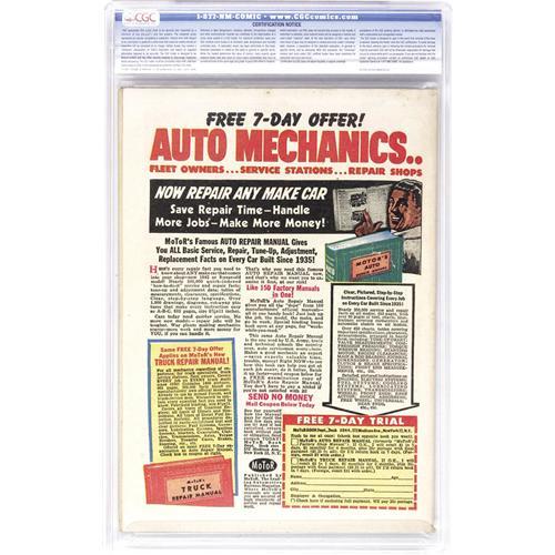 48C. COMICS – Comic books sold referencing a third-party grading service are sold "as is" without any express or implied warranty. Certain warranties may be available from the grading services and the Bidder is referred to them for further details: Comics Guaranty Corporation (CGC), P.O. Box 4738, Sarasota, FL 34230. Subject to sections 57 and 58, bidders who intend to challenge authenticity or provenance of a lot must notify Auctioneer in writing within thirty (30) days of the Auction's conclusion. Auctioneer's maximum liability shall not exceed the high bid on that lot, which bid shall be deemed for all purposes the value of the lot. In the event Auctioneer cannot deliver the lot or subsequently it is established that the lot lacks title, provenance, authenticity, or other transfer or condition issue is claimed, Auctioneer's liability shall be limited to recission of sale and refund of purchase price. After one year has elapsed, Auctioneer's maximum liability shall be limited to any commissions and fees Auctioneer earned on that lot.