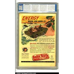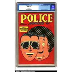 Police Comics #35 (Quality, 1944). An outstanding copy from the classic Jack Cole series, this issue features a memorable Cole cover and includes Spirit strip reprints by Will Eisner. The cherry-red cover looks as fresh as the day it was published. CGC VF/NM 9.0 Off-white pages. Overstreet 2001 NM 9.4 value = $450. Important notice: We expect to be auctioning lots at the rate of 200-250 per hour. Sometimes eBay Premier live bid software cannot keep up with that pace, so we strongly recommend that you place a realistic proxy bid now as insurance to avoid disappointment. Also please note that all Heritage/CAA lots purchased through eBay Premier carry a 20% Buyer's Premium.