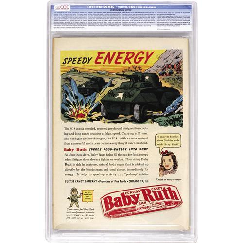 <B>Police Comics #44 Davis Crippen ("D" Copy) pedigree (Quality, 1945) CGC NM- 9.2 Off-white pages.</B></I> Not only does this issue feature a groovy Plastic Man story, cover, and art by Jack Cole, it was also the first to begin reprinting Spirit episodes written and drawn solely by Lou Fine, who took care of the strip while Eisner served in the Army during World War II. An extremely beautiful and desirable copy, only the tiniest amount of tanning to the right edge keeps it from grading higher. Overstreet 2006 NM- 9.2 value = $685. CGC census 7/06: 1 in 9.2, 1 higher. <I>From the Crippen Collection.</B></I> <BR><BR><B>Important notice:</B> Heritage usually auctions material at the rate of 200-250 lots per hour. On some occasions eBay Live bid software or the Internet may not be able to keep up with the pace of the auction. We recommend placing a realistic absentee bid now as insurance to avoid disappointment. Occasionally the auctioneer may eliminate or reject an eBay Live bid, and the auctioneer may also reopen a lot after the close of the eBay live bidding (usually because we missed an audience bid), and may reject your bid even if it shows you as the winning bidder. By bidding via eBay Live, you agree that Heritage may award the lot to another bidder at its sole discretion under the circumstances described above or any other reasonable circumstances. Since eBay bids are not shown to us until we open the lot on the floor, we treat those bids just like floor bids. In most cases the floor responds before the eBay bid is presented to us, due to Internet lag time, so for consistency we have made it a policy that floor bids are always considered first over tie eBay live bids. Also please note that all Heritage lots purchased through eBay Live carry a 22.5% Buyer's Premium. Please make sure you read the Terms and Conditions before you bid. This lot is being auctioned in conjunction with a live floor auction by Heritage Auction Galleries. All final auction and invoice information will be supplied by Heritage Auction Galleries, and all other information should be considered preliminary. Lot:41001 <BR><BR><B>Winning Notification and Billing:</B> After the FINAL session in this auction is complete, Heritage will send e-mail and snail mail invoices. This process normally takes several days. All final auction and invoice information will be supplied by Heritage Auction Galleries, and all other information should be considered preliminary. <BR><BR>This auction will be conducted on a live auction floor and over the Internet through eBay Live. If you choose to place an absentee bid, please take a moment to <font color='#0000ff'><u><a href='http://pages.ebay.com/liveauctions/help/before/laabsentee.html'>learn how eBay Live absentee bidding works</a></u></font><font color='#000000'>
