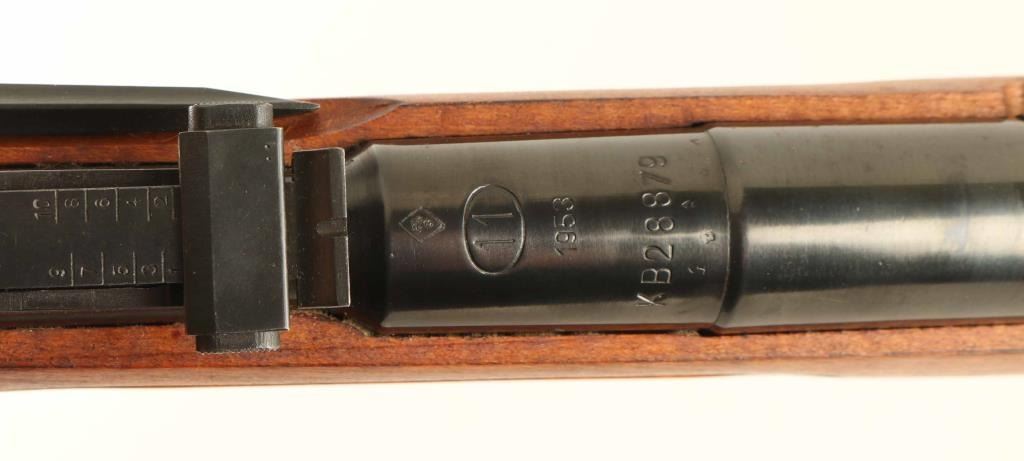 Rifle, Bolt-action. Polish Military issue. These M44 carbines were produced from 1950-1962. , and follow the same pattern as the Russian models, with minor differences. Well made in factory 11 in Radom. (Marked on receiver ring) Fed from a 5-rd fixed magazine. Blued metal finish, with smooth, straight, wood stock, and handguard. Chrome bolt, and cleaning rod. Integrated side-folding bayonet. 20 1/4" barrel, with hooded elevation adjustable front sight post. Adjustable rear sights. Serial numbers match throughout. Blued metal finish is excellent, with a couple of minor scratches. Wood is excellent, with Polish proofs. Imported by Intrac, marked on the underside of bayonet stud. Bore appears excellent/bright. Action is smooth/tight. NRA Condition-Excellent. Modern Firearm. C&R eligible.