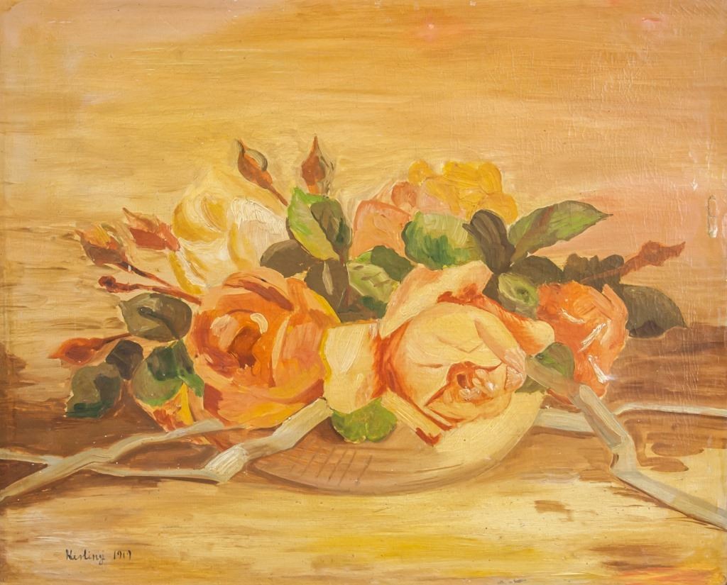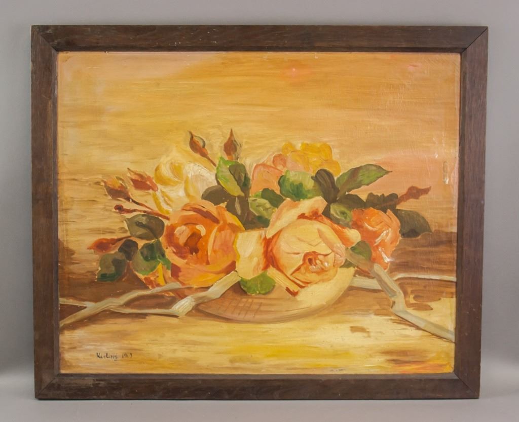 Oil on canvas, framed. Featuring still-life of a bowl of flowers. Signed "Kisling" to the bottom right corner. With 1919 inscribed beside the signature. Canvas size: 49.5 x 61 cm (19.5 x 24 inches). Frame size: 57.5 x 69 cm (22.5 x 27.3 inches).