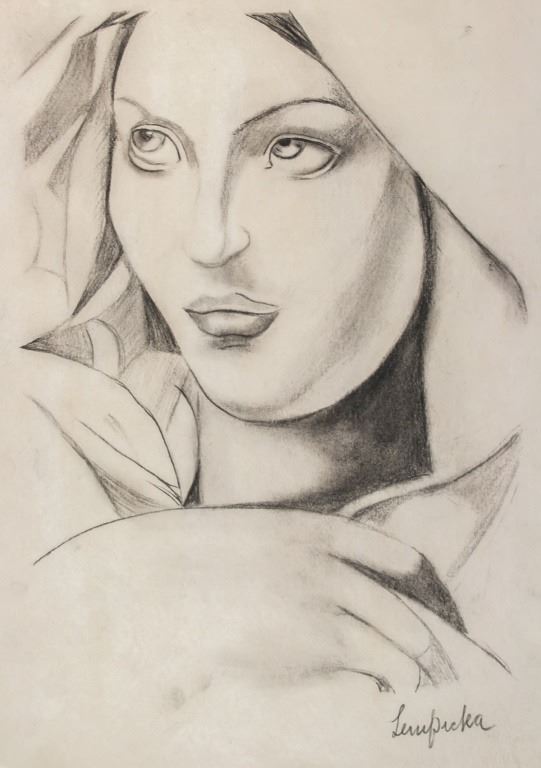 Pencil on paper. Featuring portrait of a woman. Signed "Lempicka" to the bottom right. 30 x 21 cm (11 3/4 x 8 1/4 inches).
