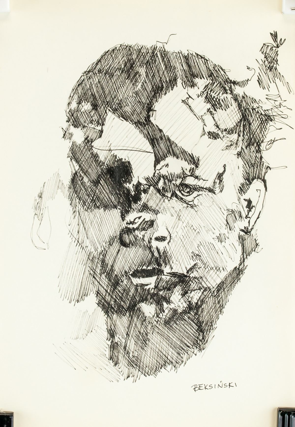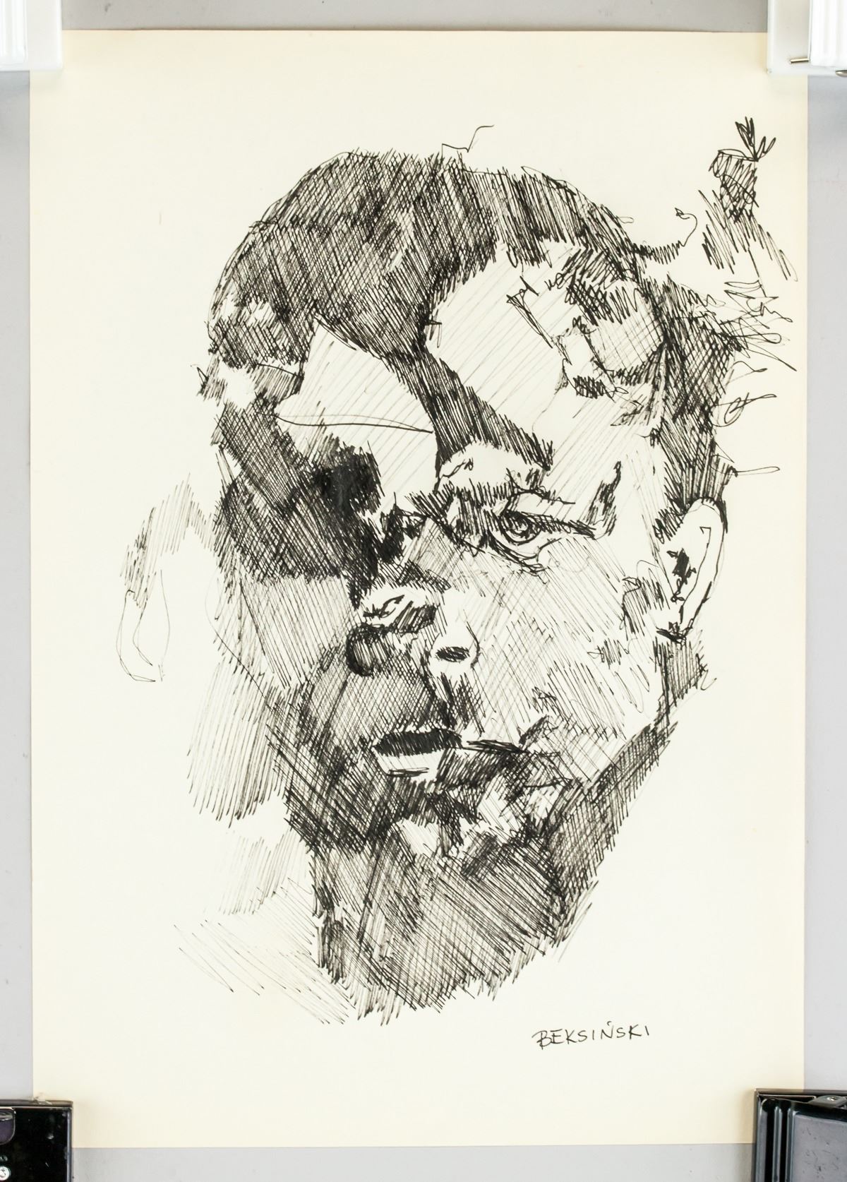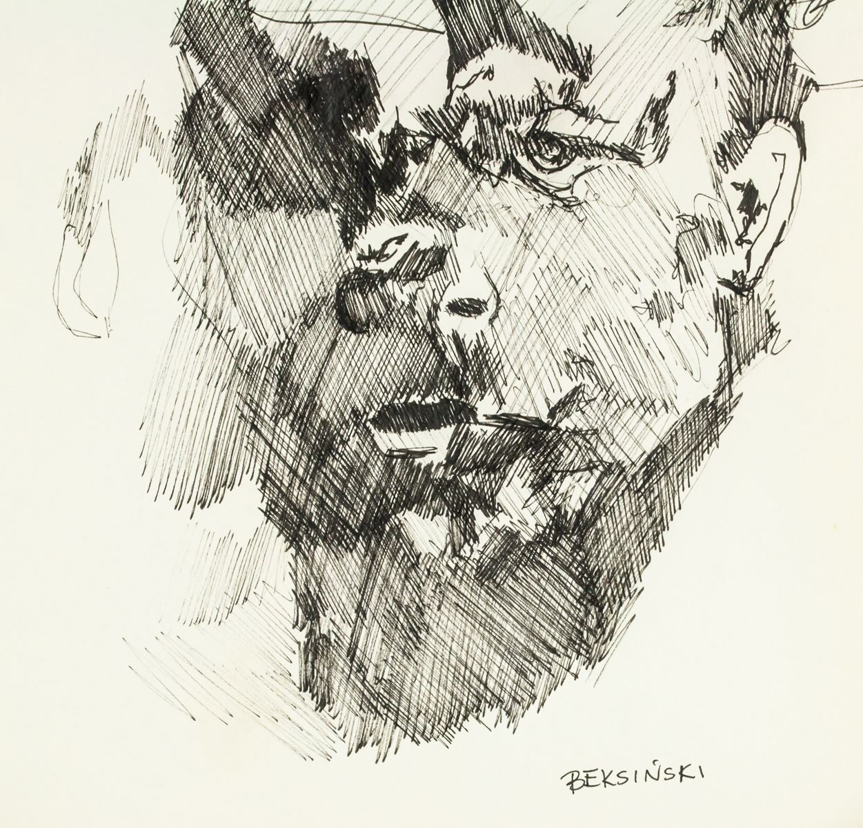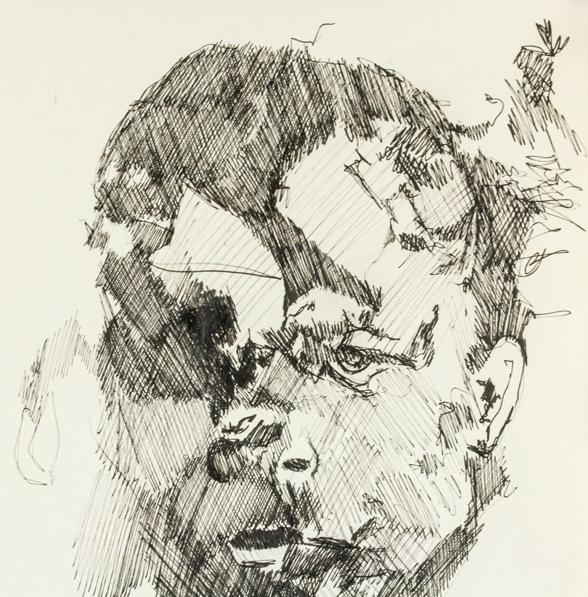 Ink on paper. Featuring portrait of a man's face. Signed illegibly on the lower right corner. 30 x 21 cm (11.8 x 8.3 inches). PROVENANCE: Southern Ontario estate