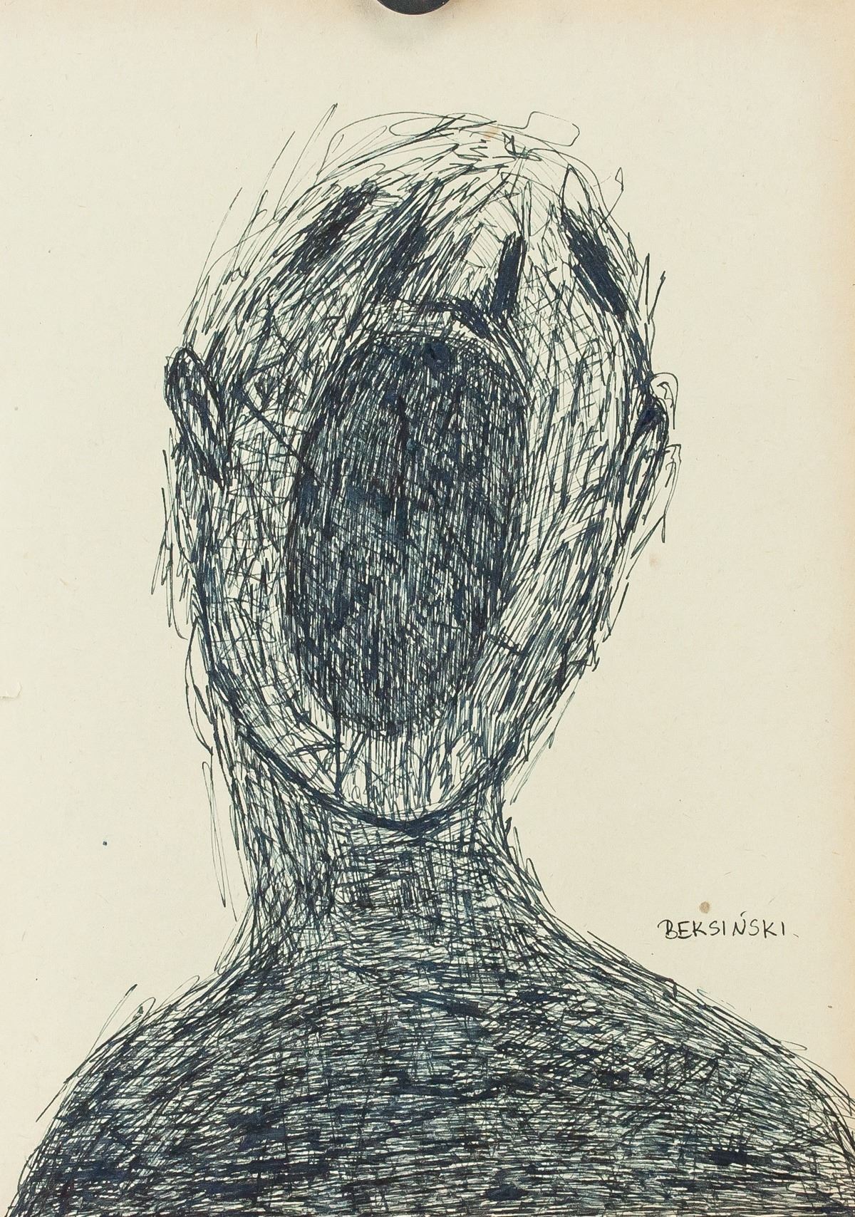 Ink on paper. Featuring a surrealist portrait of a screaming man. Signed illegibly on the lower right corner. 30 x 21 cm (11.75 x 8.25 inches). PROVENANCE: This lot carries limited provenance from a Southern Ontario estate