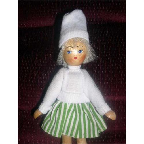 Here is a 7" Polish Wooden doll. She has is jointed at the arms and legs. She is wearing a white sweater and cap. There is a dirty spot on the sweater where probably a price sticker was. She is from a smoke free environment. Buyer to pay $10 for shipping, insurance and handling. Thanks for viewing.