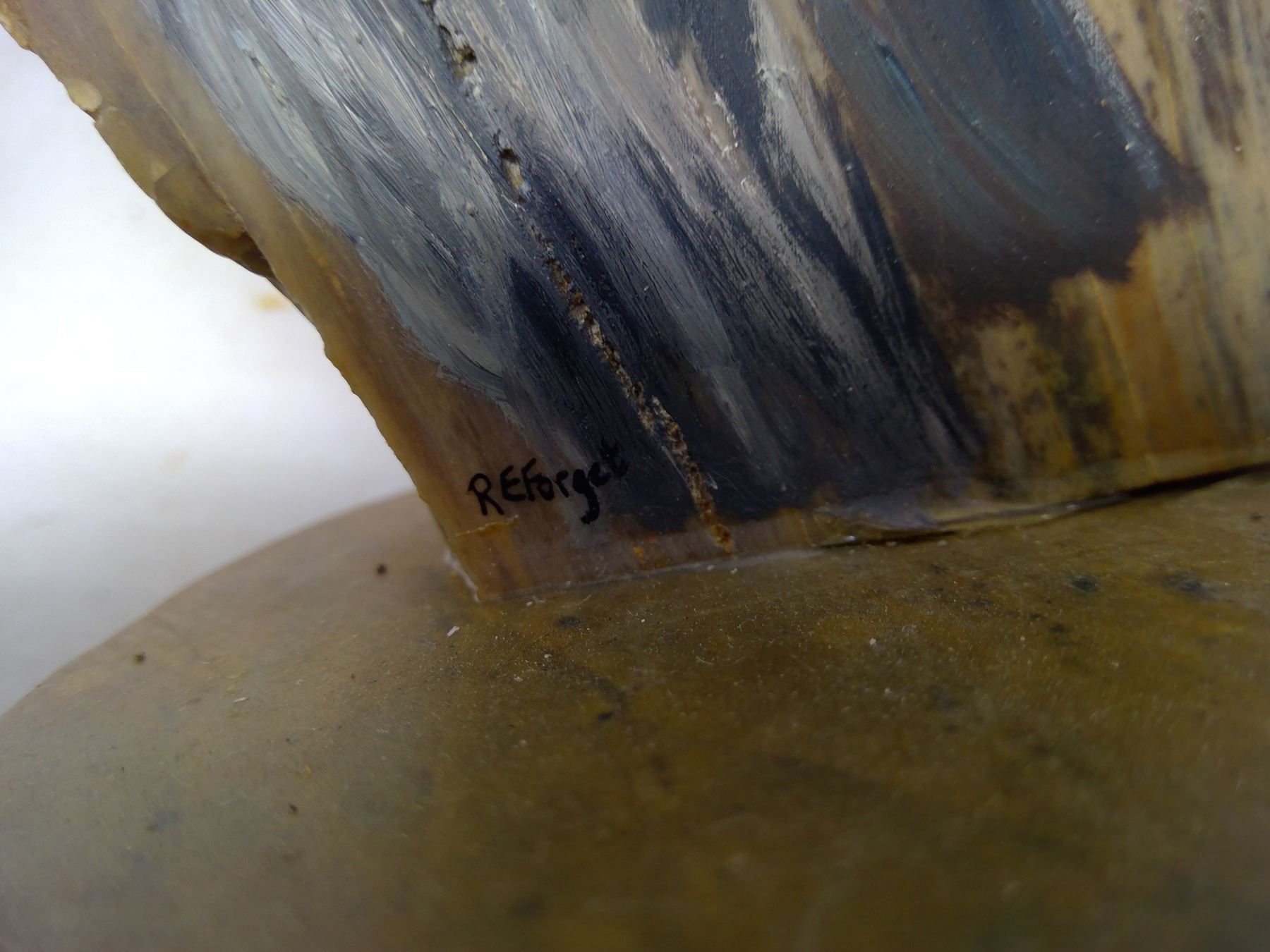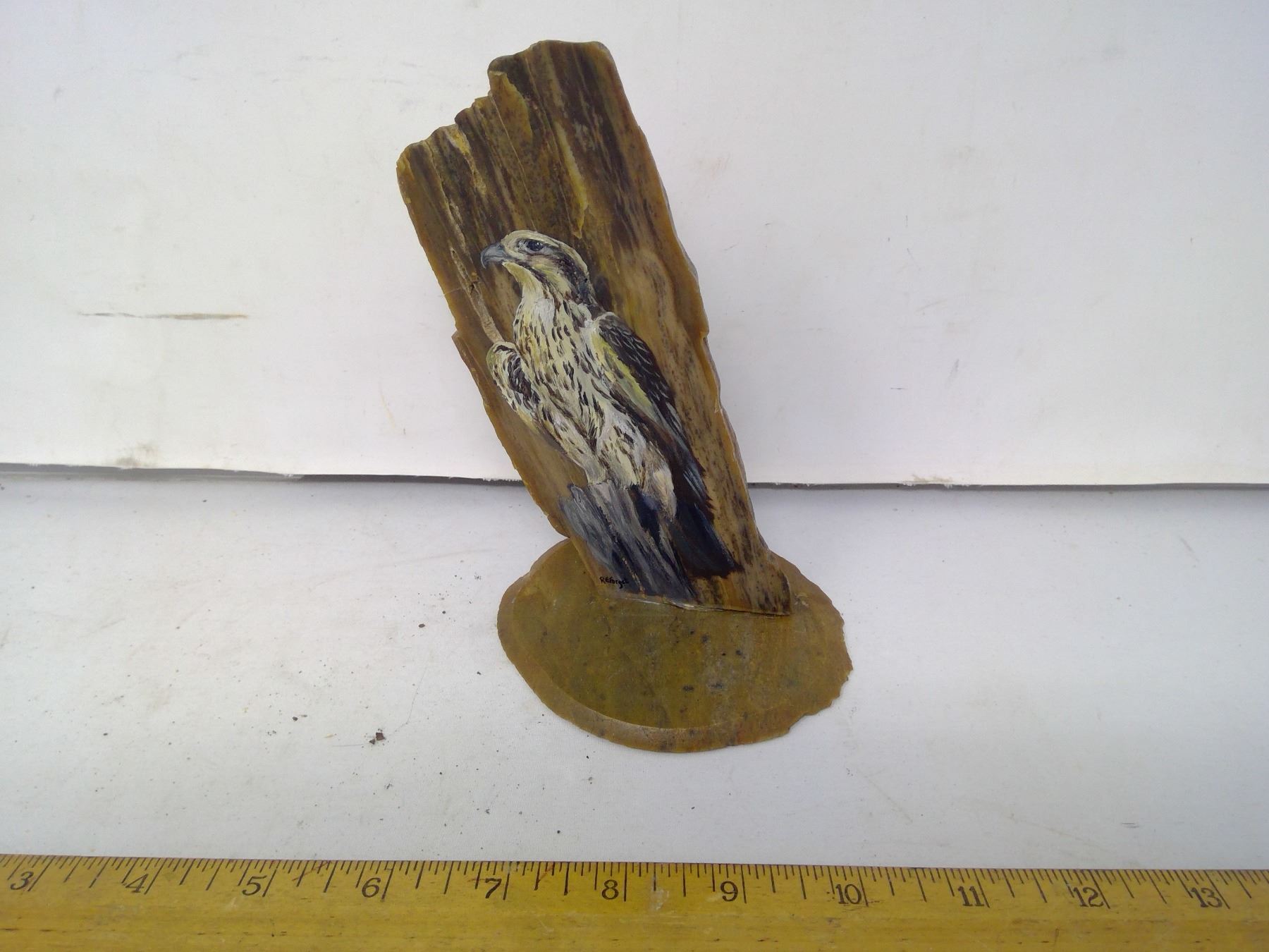 235 Polished petrified wood hand painted with a hawk by R.E. Forget
