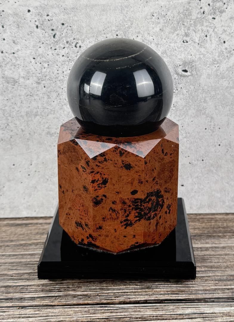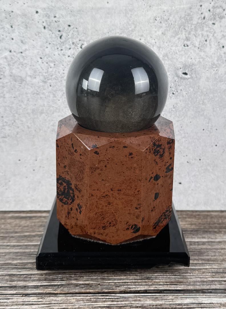 Sphere is 2 3/8" in diameter. 5 1/4" total height.