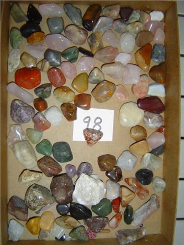 102 plus pieces of polished semi-precious stones, good quality, med to large size, some geodes, etc., approx. 2.5 lbs.