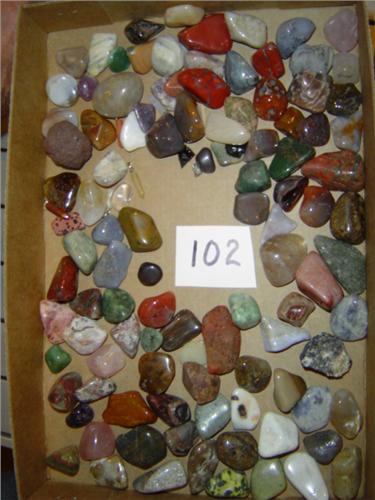 106 plus pieces of polished semi-precious stones, good quality, med to large size, some geodes, etc., approx. 2.5 lbs.