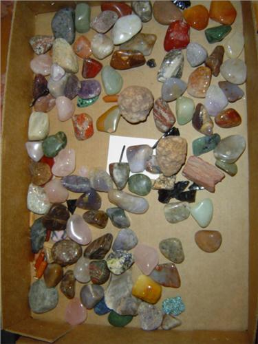 108 plus pieces of polished semi-precious stones, good quality, med to large size, some geodes, etc., approx. 2.5 lbs.