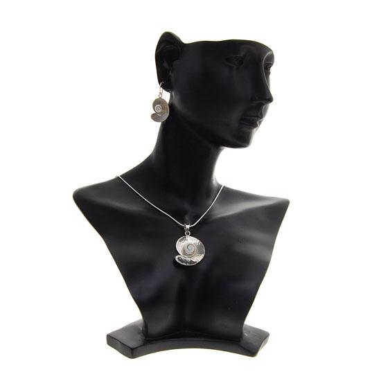 Excellent polished shell set earrings necklace pendant with sterling silver; $895 retail