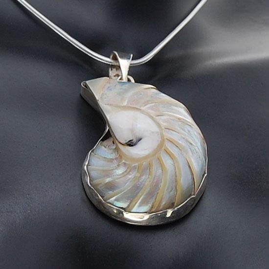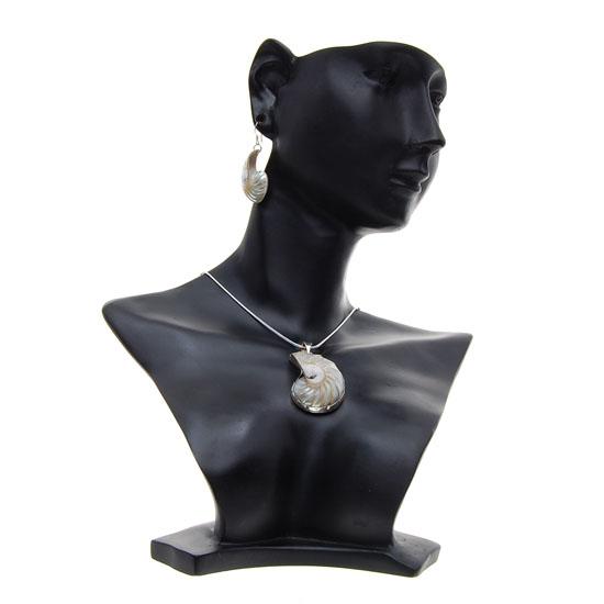 Excellent polished shell set earrings necklace pendant with sterling silver; $895 retail