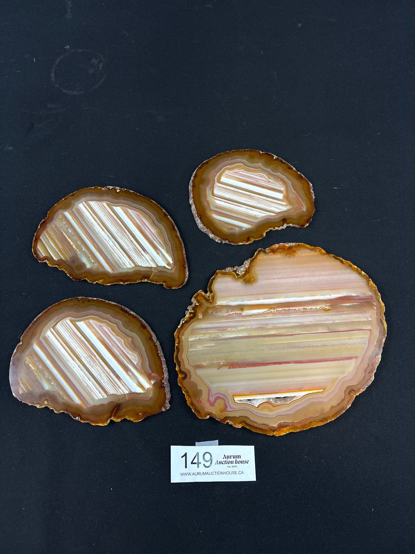Polished Slices of Natural Banded Brown Agate Geode - Largest is 7" x 8"