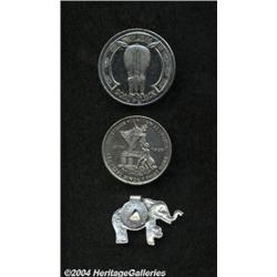 <table><tr><td><table><tr><td>Political Memorabilia. An interesting assortment, including: a New Deal medal with donkey's head on one side and back side on the other, VF, nickel; a G.O.P. white metal cut-out elephant that has a fold-down lapel clamp on the back; and a Sesquicentennial "How We Grew" medal in nickel. 3 items <BR><BR><B>Important notice:</B> Heritage usually auctions material at the rate of 200-250 lots per hour. On some occasions eBay Live bid software or the Internet may not be able to keep up with the pace of the auction. We recommend placing a realistic absentee bid now as insurance to avoid disappointment. Occasionally the auctioneer may eliminate or reject an eBay Live bid, and the auctioneer may also reopen a lot after the close of the eBay live bidding (usually because we missed an audience bid), and may reject your bid even if it shows you as the winning bidder. By bidding via eBay Live, you agree that Heritage may award the lot to another bidder at its sole discretion under the circumstances described above or any other reasonable circumstances. Since eBay bids are not shown to us until we open the lot on the floor, we treat those bids just like floor bids. In most cases the floor responds before the eBay bid is presented to us, due to Internet lag time, so for consistency we have made it a policy that floor bids are always considered first over tie eBay live bids. Also please note that all Heritage lots purchased through eBay Live carry a 20% Buyer's Premium. Please make sure you read the Terms and Conditions before you bid. <BR><BR><B>IMPORTANT ANNOUNCEMENT ABOUT RESERVES:</B> Heritage now divulges all reserves on its web site 7 days before every auction. If you want to know whether the reserve on this lot has been met, and if not, what the reserve amount is, please visit this lot page on the HeritageCoin.com web site, or email: bid@HeritageGalleries.com </span></font></td></tr></table></td></tr></table>