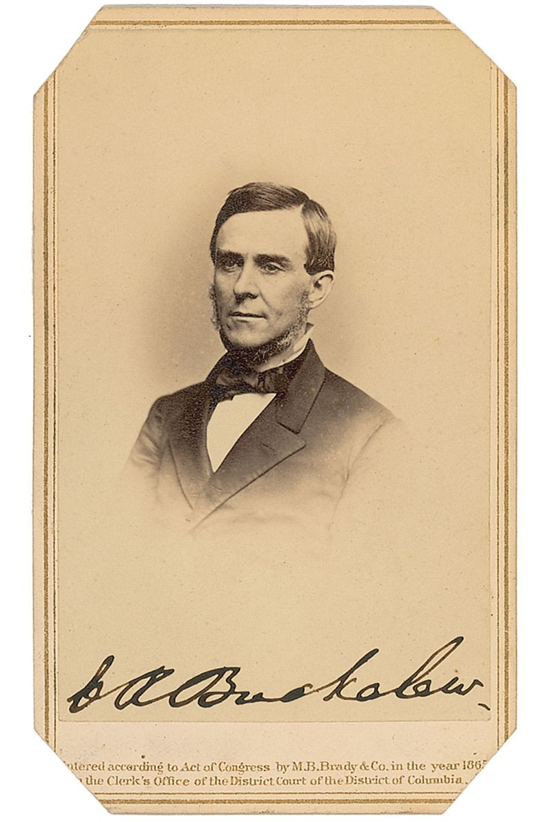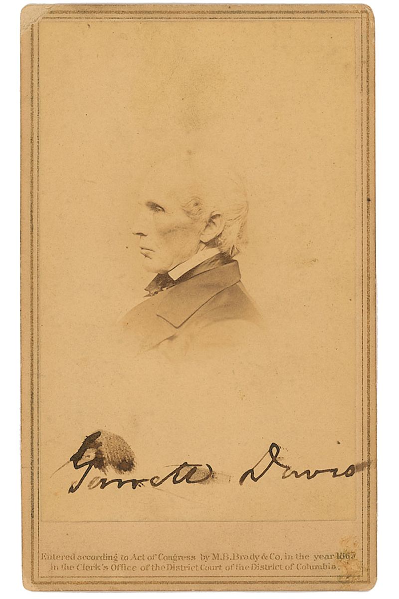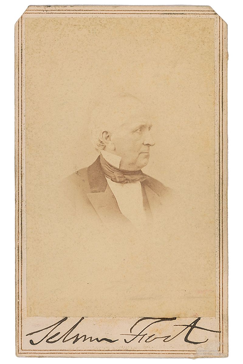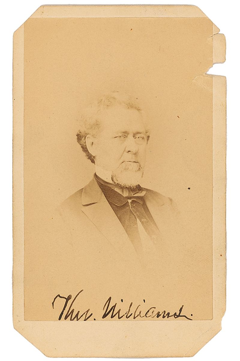 Excellent collection of twenty photographs, each signed by a notable American politician. Fourteen are cartes-de-visite, signed individually by the following: John A. Andrew, George S. Boutwell, Charles Rollin Buckalew, George E. Cole, Edgar Cowan, Garrett Davis, Solomon Foot, James Harlan, James Kennedy Moorhead, Marcus Mills Pomeroy (signed on reverse), Samuel Clarke Pomeroy, Edward Henry Rollins, Thomas Williams, and James Falconer Wilson. The remaining six are impressive cabinet photos, signed by: Thomas Ewing, Walter Q. Gresham, Judson Harmon, Hilary A. Herbert, Daniel S. Lamont, and William L. Wilson. In overall very good condition, with clipped corners and chipping along edges of many.