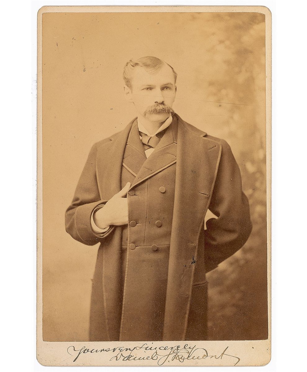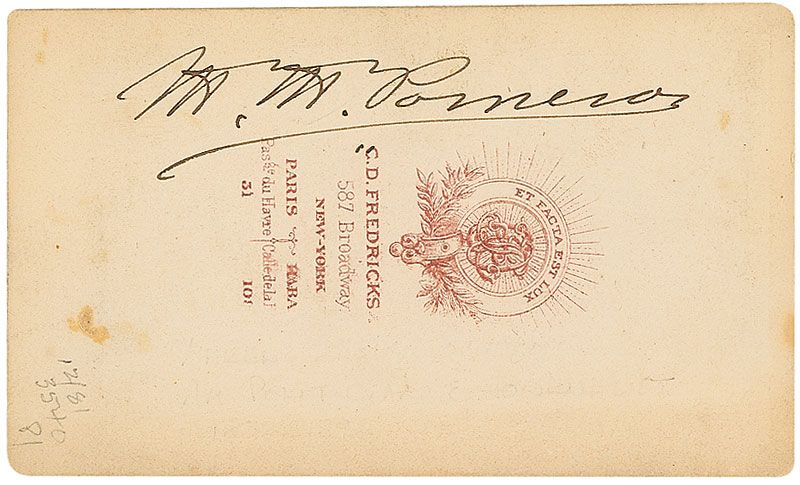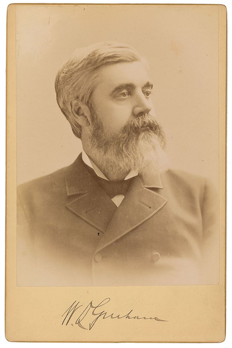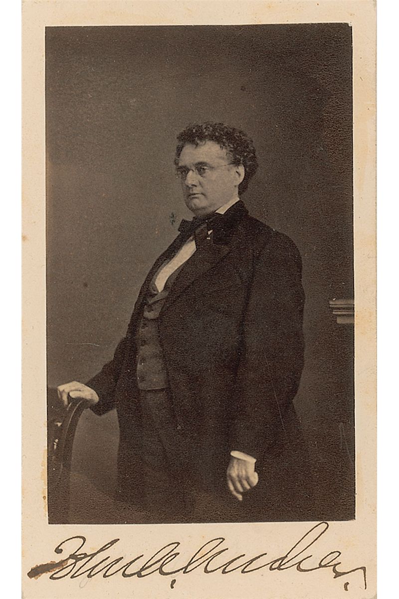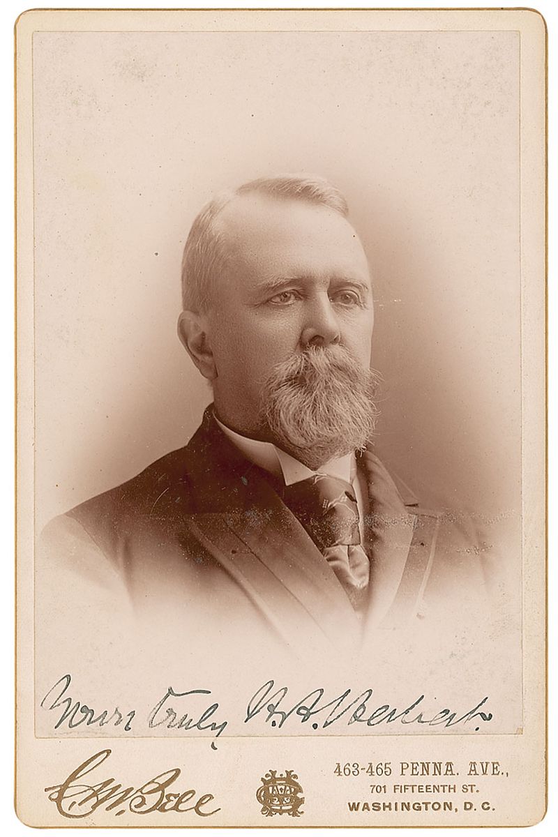 Excellent collection of twenty photographs, each signed by a notable American politician. Fourteen are cartes-de-visite, signed individually by the following: John A. Andrew, George S. Boutwell, Charles Rollin Buckalew, George E. Cole, Edgar Cowan, Garrett Davis, Solomon Foot, James Harlan, James Kennedy Moorhead, Marcus Mills Pomeroy (signed on reverse), Samuel Clarke Pomeroy, Edward Henry Rollins, Thomas Williams, and James Falconer Wilson. The remaining six are impressive cabinet photos, signed by: Thomas Ewing, Walter Q. Gresham, Judson Harmon, Hilary A. Herbert, Daniel S. Lamont, and William L. Wilson. In overall very good condition, with clipped corners and chipping along edges of many.