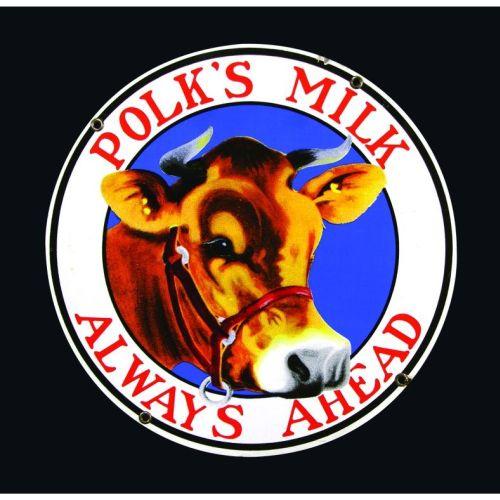 Polks Milk Porcelain Sign. Tiny chip at 1:00 otherwise near mint condition. 16 inch diameter.