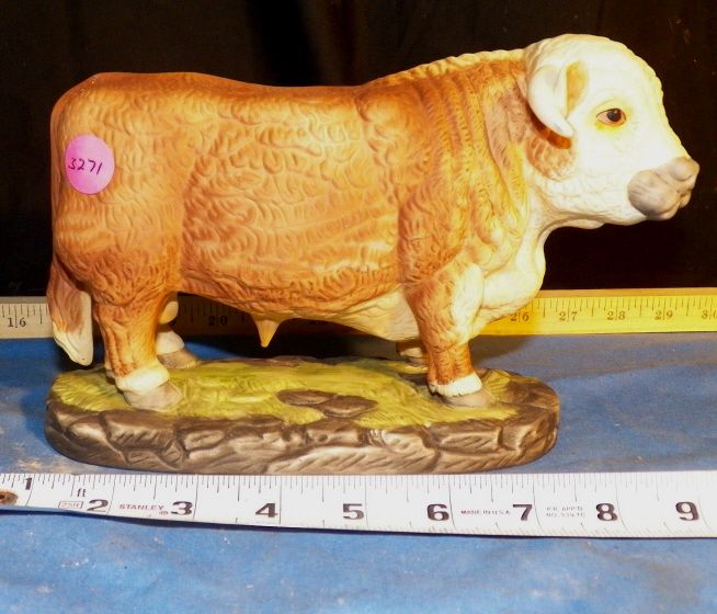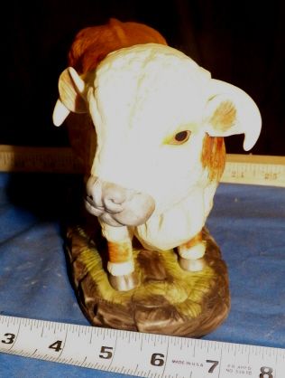 Ceramic Whiteface Bull with Glass Eyes approx 9" x 6"