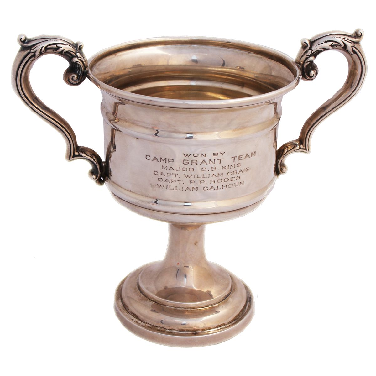 Early and rare 1921 Polo Association silver trophy. The Polo Association, later known as the U.S. Polo Association, was formed in 1890. The inscription on one side of the cup reads: ''Polo Association / Mid-Western Circuit Cup / Played at Miami Valley Hunt and Polo Club / Dayton, Ohio / September, 1921''. Engraving on the other side reads: ''Won by Camp Grant Team / Major C.B. King / Capt. William Craig / Capt. Rodes / William Calhoun''. A sterling mark appears on the bottom of the cup. Minor surface abrasions, else very good.