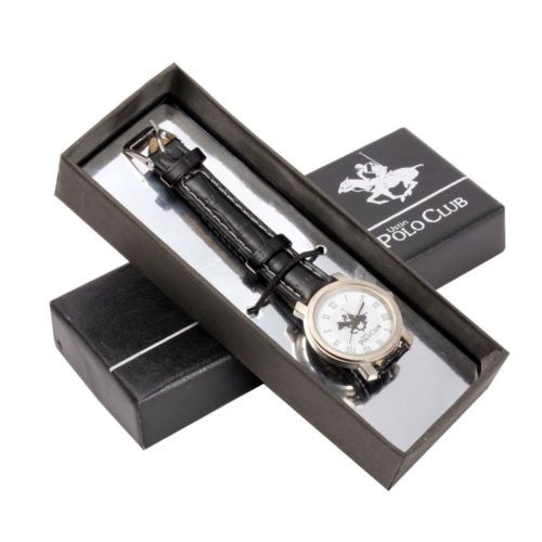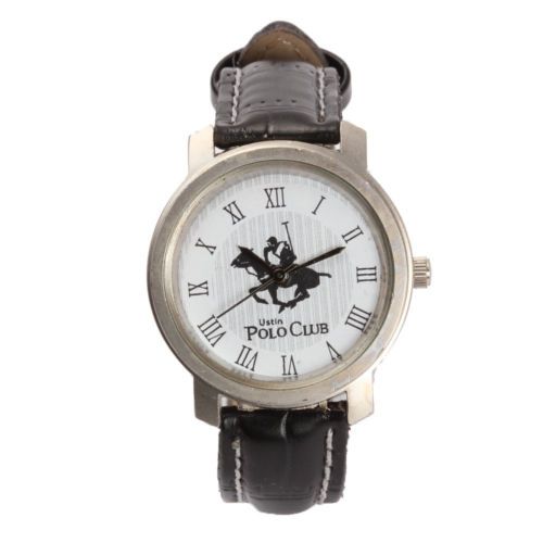 Polo club wrist watch for unisex, Brand : Polo ; Type : Analog ; Ideal for : Unsex ; Feature : Water Resistant ; Strap Material : Leather ; Strap Colour : Black ; Dial Colour : White ; Dial Shape : Round.