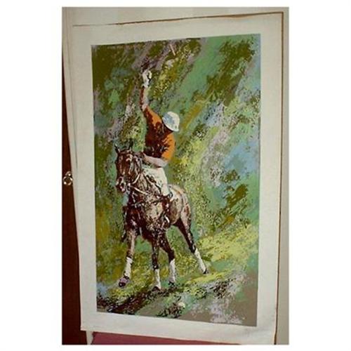 <table width="100%" border="0" cellspacing="0" cellpadding="4"><tr><td><em> Big Polo Serigraph, 44" by 29"</em></td></tr><tr> <td width="100%"> This large art piece is an original serigraph, titled Polo, by well known graphic artist and theatre set designer, Mark King. Signed and numbered CVI-CXXV. We have the Certificate of Authenticity, registration number 29424.<p>Unframed, outside boarder measurements are: 44 1/2" tall, by 29 1/2" wide.<p>In very good condition, has a water mark on bottom of the white boarder.<p>An action serigraph of a polo player riding a polo pony, his polo stick high over his head ready to swing the ball into play. The colors are vibrant: Background in shades of green, lavender, blue. Brown polo pony with white wrapped ankles. Polo player in orange shirt, white pants, white helment. White ball.<p>What a rare find for the polo enthusiast. Great action art for any horse lover. </td></tr><tr> <td> </td></tr><tr> <td>Reference #: 1532</td></tr><tr><td>Condition:Very Good</td></tr><tr><td>Year:1980</td></tr><tr><td>Maker:Mark King</td></tr><tr><td>Height:44.5</td></tr><tr><td>Width:29.5</td></tr><tr><td>Title:Polo Original Serigraph by Mark King</td></tr><tr><td>Materials:Paper</td></tr><tr><td>Location:Deland, Florida</td></tr></table>