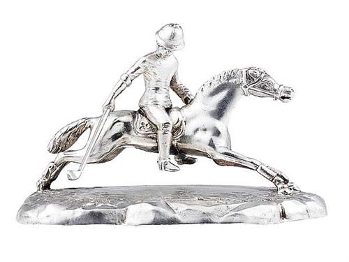 Silver, 61 g. Cast base, figure playing polo. Marked: German, 800 fineness, circa 1900, Hungarian import mark. Size: 5 cm