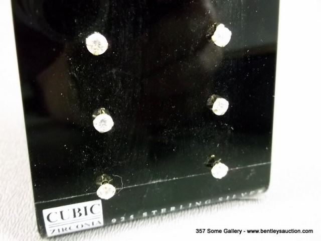 Poly Earring Display w/ 15 pair Golden Sterling CZ Stud Earrings Retail: $120.00