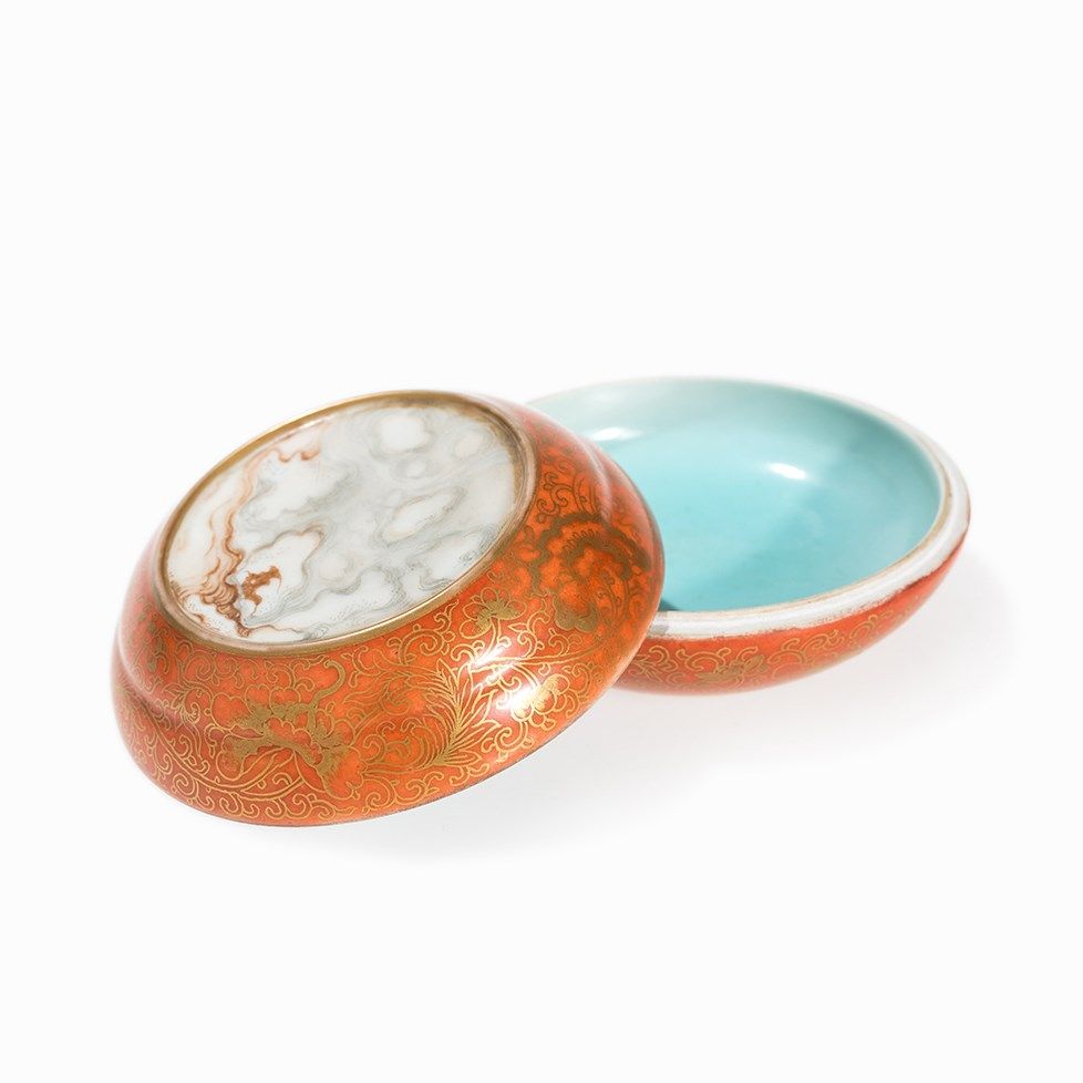 Polychrome Box and Cover with ‘Faux Marble’, Qing/Republic