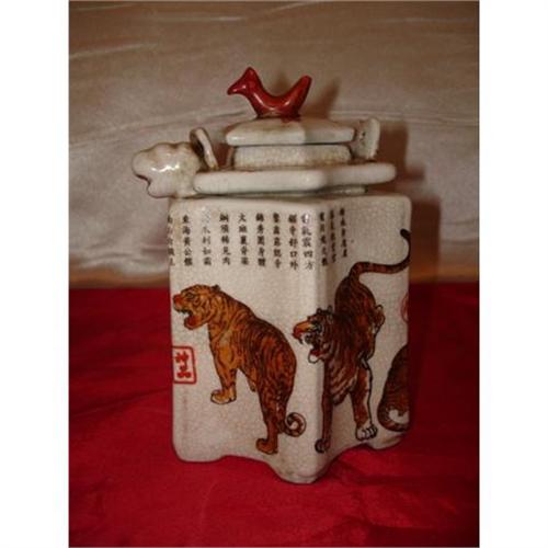 </font></strong>Description: Polychrome Porcelain tea ewer - painted with tigers